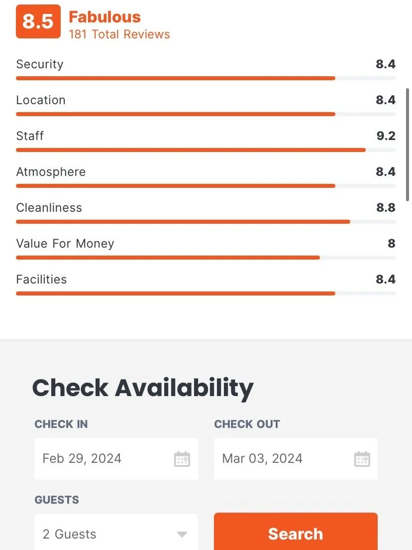 Free wifi, laundry facilities, luggage storage