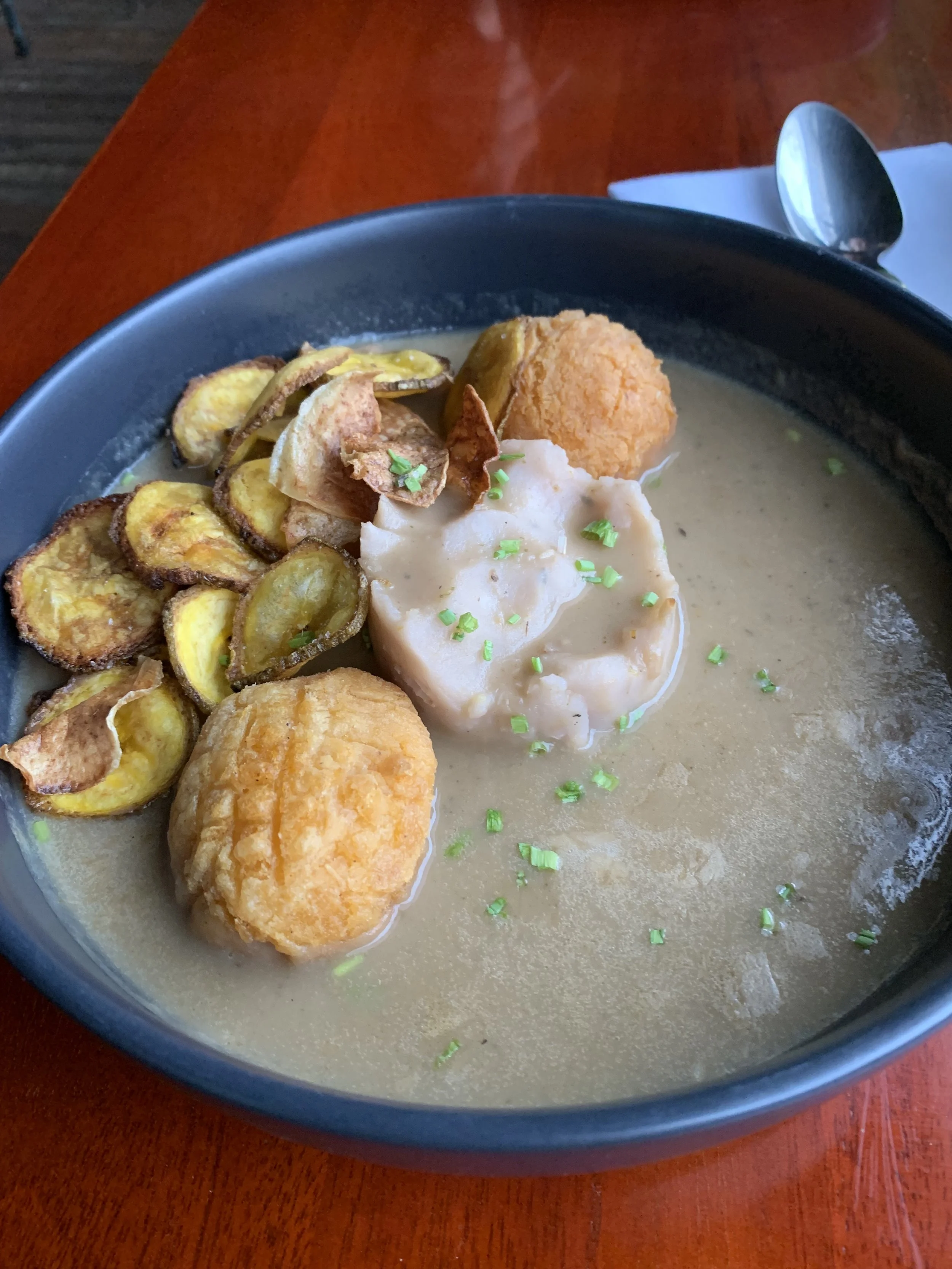 The food was delicious and I tried a dish that was completely new to me. It consisted of Yuca mash, fried plantain chips, and croquettes. It was comforting and the gravy added a wonderful warmth and flavor. I wish we had ordered a few small plates to try more of the local cuisine, given this was the only place we ate out at while staying in Vara Blanca.