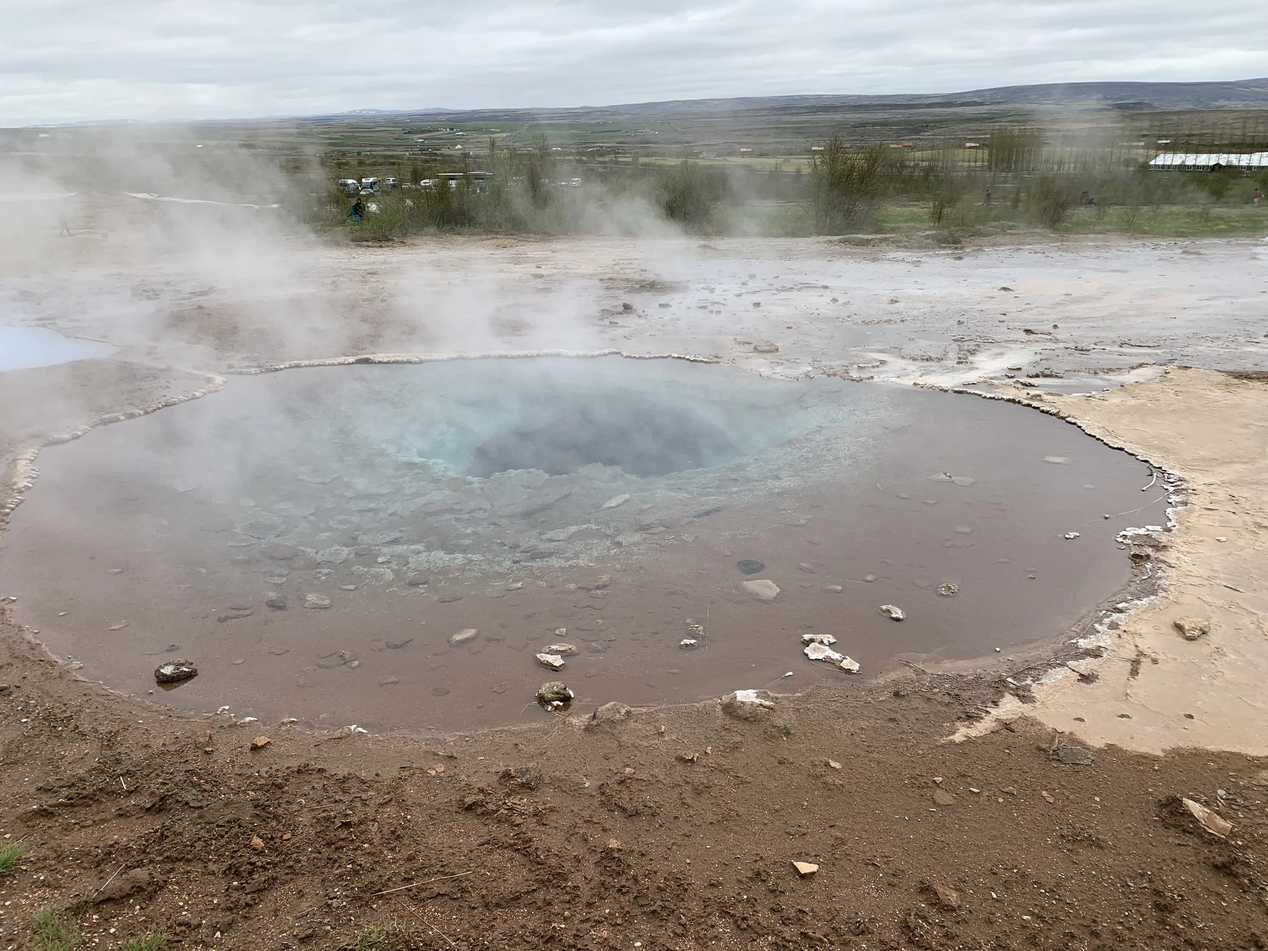It is a spectacular phenomenon to witness Strokkur, especially since it cannot be timed specifically. It is good to note the wind direction of the day as well, because you could be in for a splash. The amount of steam that follows the eruption forms an opaque wall of slowly drifting fog. The fog itself is particularly scentful. The rotten-egg smell comes from high level of hydrogen sulfide gas in the geyser basin. It is very potent and lingers throughout the front of the park.